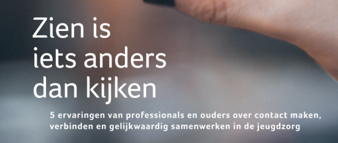 Om jeugdzorgprofessionals te inspireren over mensgericht werken heeft het Ondersteuningsteam vijf ervaringsverhalen opgetekend en gebundeld in de publicatie ‘Zien is iets anders dan kijken’. Lees hier hun verhalen. |