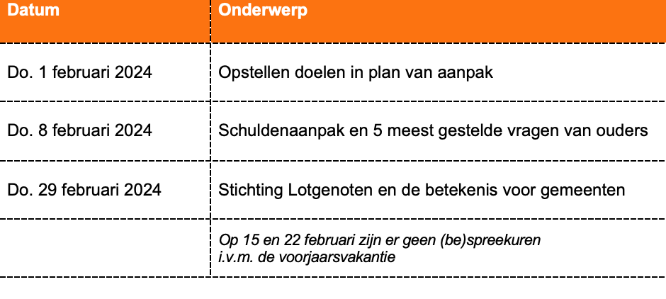 Tijdens het (be)spreekuur kunt u onderling best practices delen of andere gemeenten om advies vragen. De agenda kan wijzigen naar aanleiding van actualiteiten.