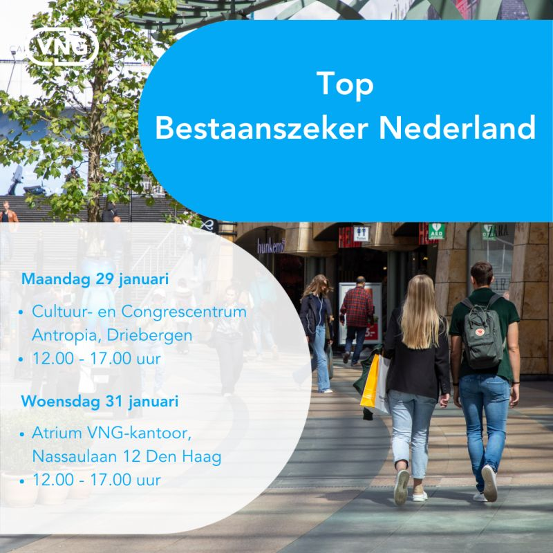 Terugblik tweedaagse Top Bestaanszeker Nederland Op 29 en 31 januari 2024 vond de tweedaagse Top Bestaanszeker Nederland plaats. Op de eerste dag kwamen inwoners en lokale bestuurders bij elkaar om met elkaar van gedachten te wisselen over welke maatregelen er nodig zijn om bestaanszekerheid in Nederland te waarborgen, nu en over 10 jaar. Op de tweede dag werden de Verklaring Bestaanszekerheid evenals de opbrengsten van de eerste dag overhandigd aan vertegenwoordigers van de landelijke politiek. Bekijk het uitgebreide verslag incl. aftermovies terug. | Bekijk hier het verslag |