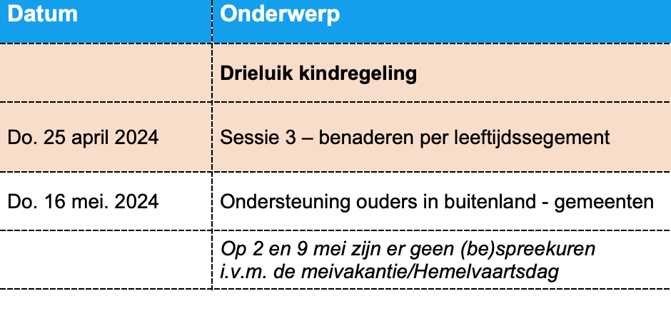 Tijdens het (be)spreekuur kunt u onderling best practices delen of andere gemeenten om advies vragen. De agenda kan wijzigen naar aanleiding van actualiteiten.