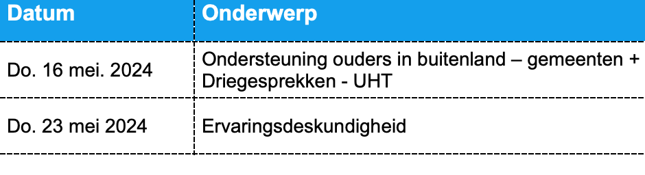 16 mei komt het driegesprek ook aan bod. De projectleider van UHT geeft dan een toelichting op hoe de UHT-organisatie is ingericht voor het voeren van driegesprekken. |