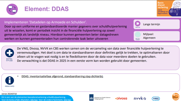 Contactpersonen gezocht voor verzamelen data over schuldhulpverlening voor betrouwbaar landelijk beeldOnder de noemer DDAS werken CBS, Divosa, NVVK en VNG samen aan een initiatief om informatie over armoede en schulden in kaart te brengen. DDAS staat voor Data Delen Armoede en Schulden en is een van de elementen uit de Basisdienstverlening Schuldhulpverlening. Wanneer iedere gemeente in Nederland meedoet, krijgt u beter en eenduidig inzicht in de resultaten van het schuldenbeleid. Ook wordt u ontlast door minder uitvragen, omdat er maar op één manier door één partij om uw gegevens wordt gevraagd. Bent u binnen uw gemeente verantwoordelijk voor het schuldenbeleid? Dan kunt u zich via dit formulier aanmelden en komen we graag in contact. | | Lees meer |