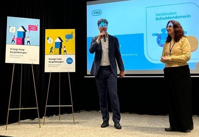Landelijke bijeenkomst VroegsignaleringOp 1 oktober vond de Landelijke Bijeenkomst Vroegsignalering plaats die we samen met de NVVK en Divosa organiseerden. Tijdens deze bijeenkomst werden 300 belangstellenden uit de hele keten bijgepraat over de ontwikkelingen. Tijdens het plenaire gedeelte reikte Gert-Jan Bakker (VNG) de communicatietoolbox vroegsignalering uit aan voorzitter Renate Richters van de NVVK. | | Lees meer |