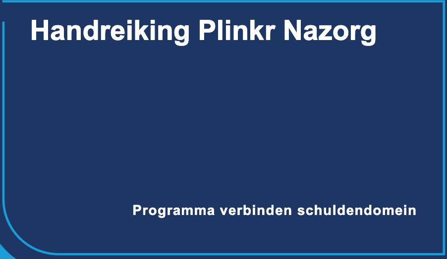 Nu beschikbaar: de vernieuwde handreiking Plinkr NazorgHet programma Verbinden Schuldendomein ontwikkelde een handreiking om gemeenten te ondersteunen bij de afweging of en hoe Plinkr Nazorg een aanvulling kan zijn op hun dienstverlening. Ook vindt u daarin een stappenplan voor de implementatie. We hebben deze handreiking recent geactualiseerd en nieuwe ontwikkelingen hierin meegenomen. Lees hier meer over de implementatieondersteuning van het programma rond de interventies van SchuldenlabNL. |