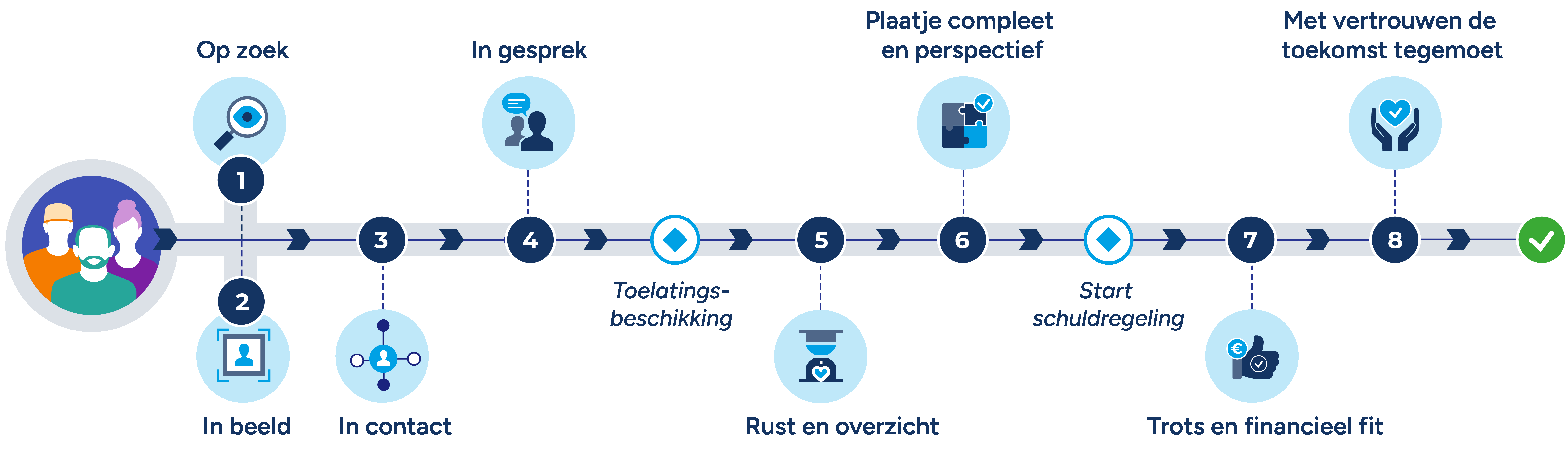 Schuldenknooppunt verder als onderdeel van het Inlichtingenbureau Sinds de start in 2021 is het Schuldenknooppunt uitgegroeid tot een onmisbaar instrument voor schuldhulpverleners, schuldeisers en bewindvoerders. Het Schuldenknooppunt wordt daarom onderdeel van een organisatie die werkt in opdracht van de Rijksoverheid: het Inlichtingenbureau (IB). Zo is het Schuldenknooppunt toekomstbestendig en kan het zich blijven ontwikkelen. Lees meer op de website van het Schuldenknooppunt. |