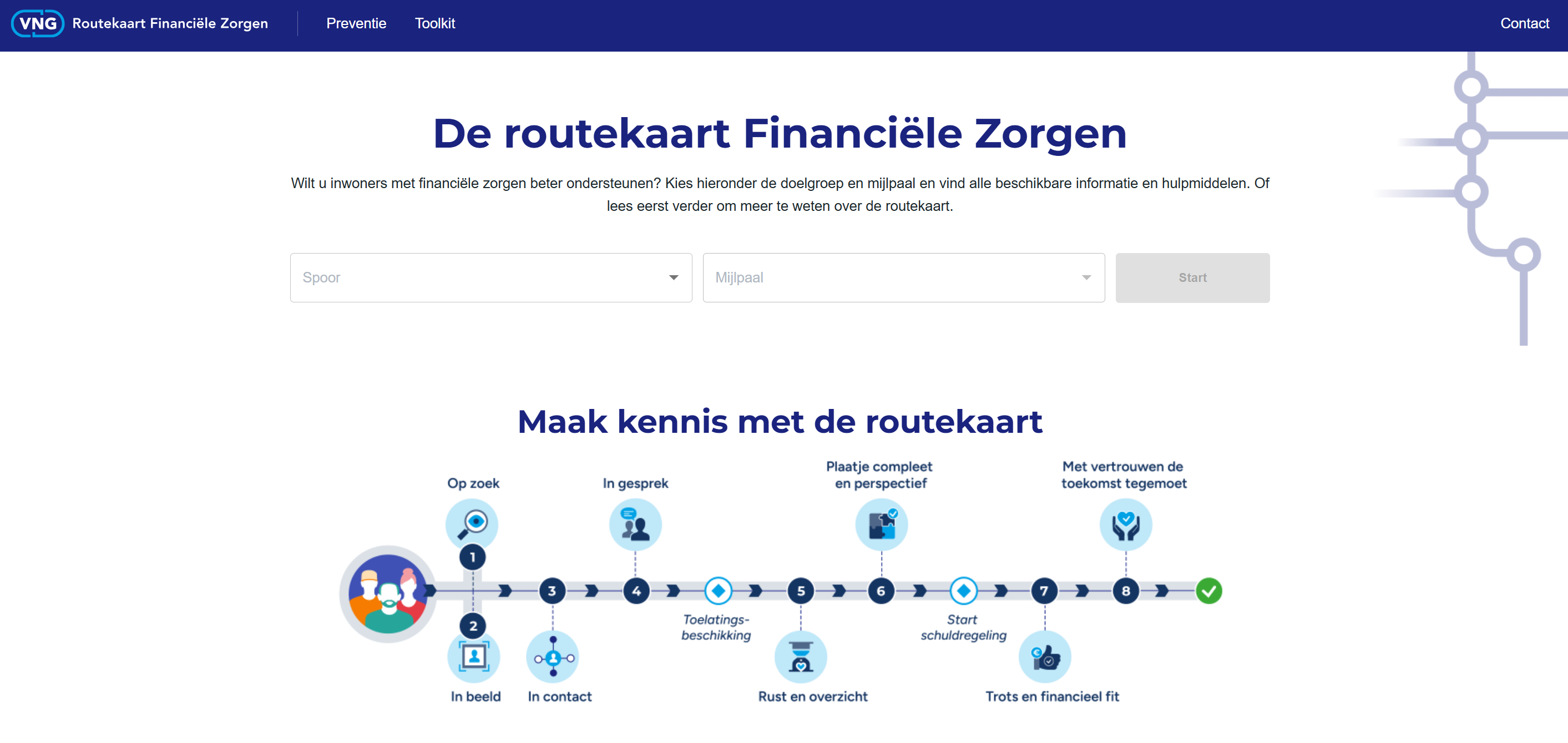 Routekaart Financiële Zorgen verder uitgebreid De routekaart Financiële Zorgen wordt steeds completer. Zo is de rol van manager toegevoegd aan de al bestaande rollen van professional, beleids- en juridisch adviseur, informatiekundig- en data-adviseur en communicatieadviseur. En ook de vernieuwde toolkit staat online, met daarin nog meer informatie om zelf met de routekaart aan de slag te gaan. |