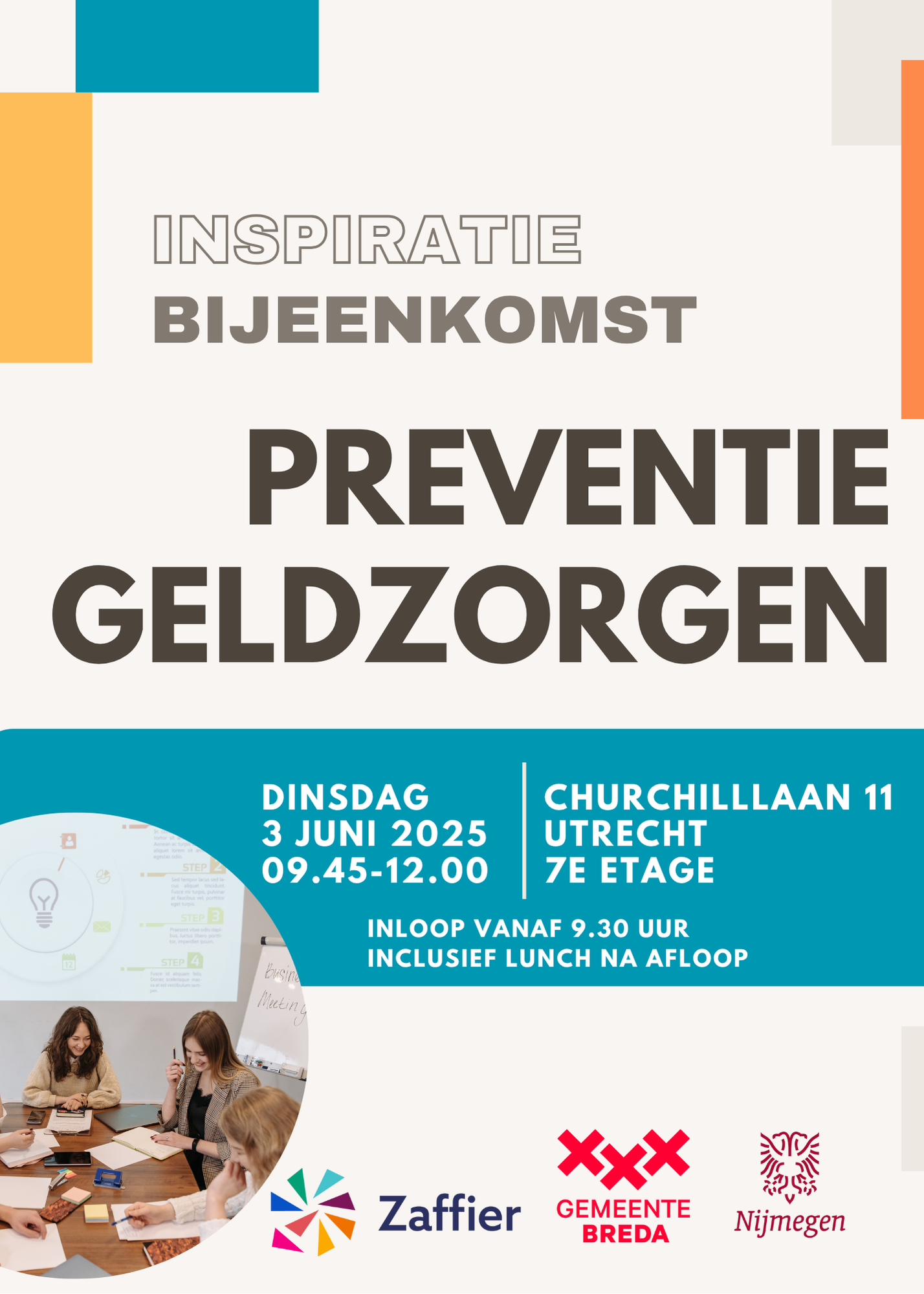 Op 3 juni organiseren de gemeente Nijmegen, gemeente Breda, Divosa en Zaffier een inspirerende bijeenkomst, waarin preventiemedewerkers elkaar ontmoeten, inzichten delen en elkaar helpen in het verder ontwikkelen. Werkt u als preventiemedewerker geldzorgen in uw gemeente en lijkt het u leuk om ervaringen met andere preventiemedewerkers in het land uit te wisselen? Meld u dan aan!