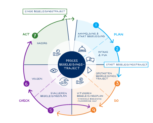 Het begeleidingstraject is de ruggengraat van effectieve schuldhulpverlening en bestaat uit financiële begeleiding en eventueel aanvullende flankerende hulp, passend bij de inwoner. Via een concreet begeleidingsplan met duidelijke doelen wordt systematisch gewerkt aan o.a. gedragsverandering, stabiliteit en zelfstandigheid. Denk daarbij aan budgetbegeleiding, coaching en eventueel budgetbeheer. Door volgen, nazorg en voortdurende evaluatie wordt terugval voorkomen.