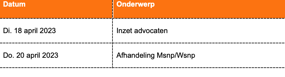 De onderwerpen van onze (be)spreekuren worden vastgesteld aan de hand van thema’s die op dit moment spelen of actualiteiten rond de hersteloperatie. Ook organiseren wij (be)spreekuren over onderwerpen waar gemeenten regelmatig vragen over stellen. Denk hierbij aan de samenwerking tussen gemeenten en de Belastingdienst of de rol van de Persoonlijk Zaakbehandelaar.