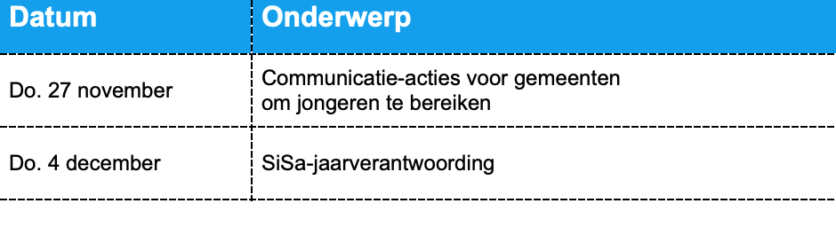 De eerste bijeenkomst is al geweest. Jongeren kunnen zich nog aanmelden voor de bijeenkomst van 14 november of 12 december.
