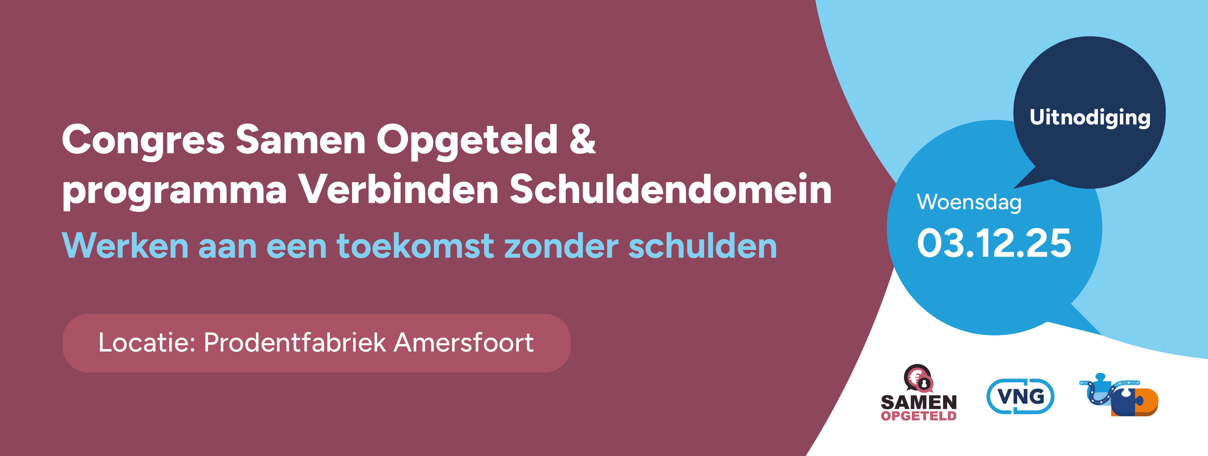 Er zijn nog enkele plekken beschikbaar voor het bijzonder gecombineerd congres op 3 december a.s.: Het congres Samen Opgeteld en de slotbijeenkomst van het programma Verbinden Schuldendomein. Werken aan een toekomst zonder schulden, in het bijzonder voor jongeren, staat centraal. Werkt u voor een gemeente, gemandateerde schuldhulpverleningsorganisatie of ketenpartner en wilt u erbij zijn? Meld u snel aan. |
