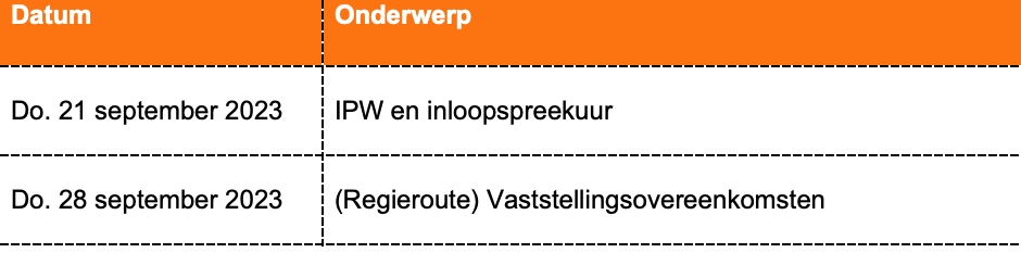 Tijdens het (be)spreekuur kunt u onderling best practices delen of andere gemeenten om advies te vragen. De agenda kan wijzigen naar aanleiding van actualiteiten.